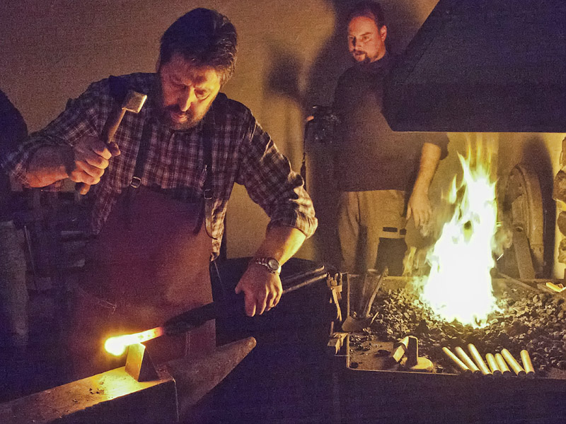 Schmiedekunst zum Anfassen: In der Duppacher „Erlebnisschmiede” unseres Vereinsmitglieds Thomas Knauf können Sie miterleben, wie am offenen Feuer kleine und grosse Kunstwerke oder Gebrauchsgegenstände aus alter Zeit entstehen.