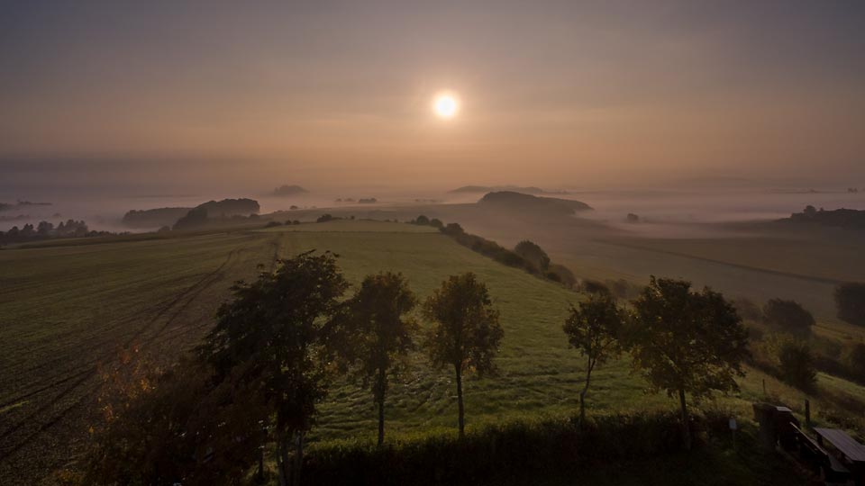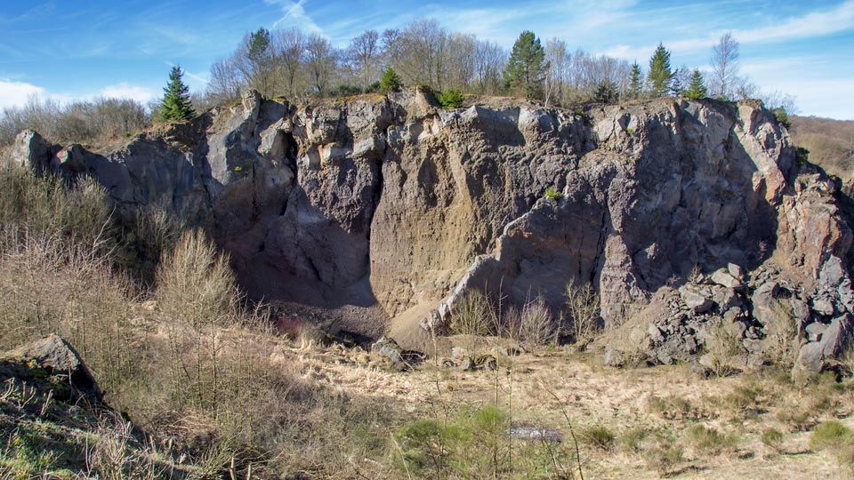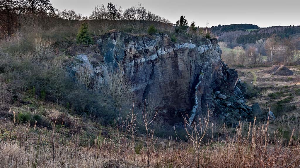 Nehmen Sie sich beim Besuch Zeit mit, und natürlich eine Kamera. Wenn die Sonne am Mittag hoch steht, werden Sie wahrscheinlich die üblichen flauen und dunstigen Bildchen knipsen. Also verschieben Sie den Besuch auf den Abend, wenn die Sonne schräg steht, wenn es Schatten und somit „Tiefe” gibt. Ganz oben auf den Resten des Steffelbergs finden Sie eine kleine Aussichts-Plattform mit einer Erklärungstafel zu allem, was Sie von dort sehen. Und das ist eine ganze Menge. Rundumsicht, Blick bis rüber zur Nürburg, und überhaupt - Vulkaneifel, aber vom Feinsten!