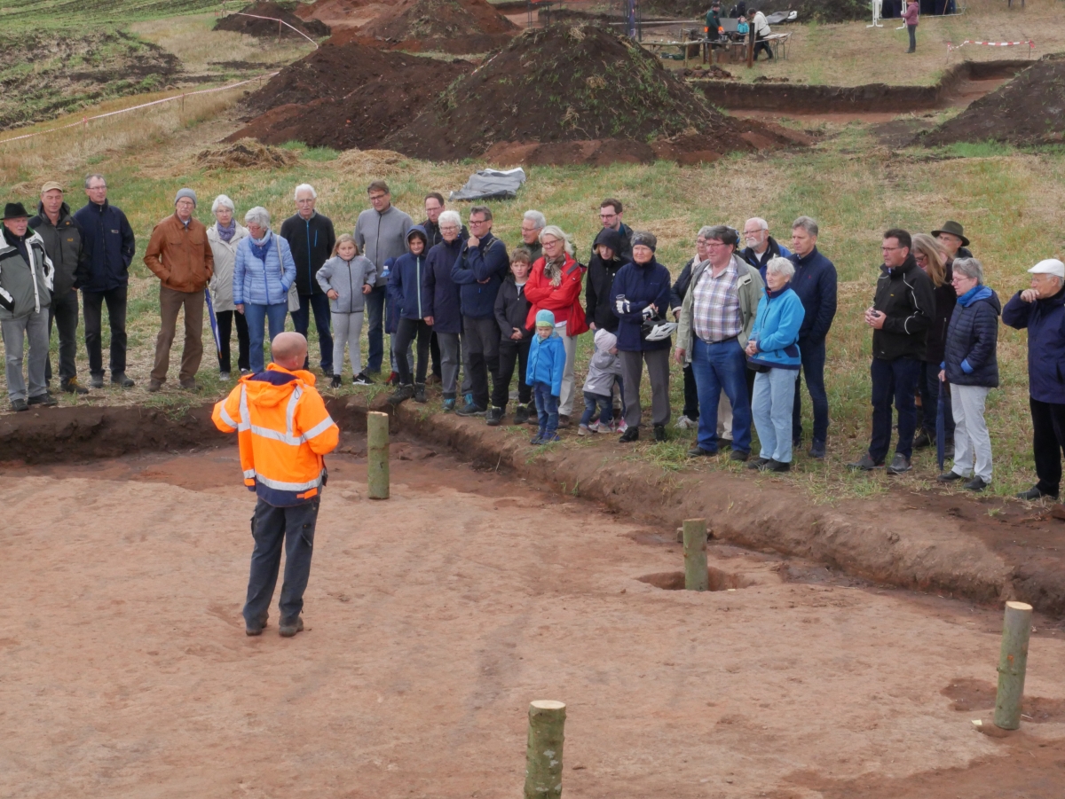 Auch wenn es der Wettergott am Nachmittag nicht gut mit uns meinte, waren wir doch erstaunt, dass trotzdem immer viele interessierte Gäste auf das Grabungsgelände kamen. Es ist und bleibt ein besonderes Erlebnis, einen Blick in die Zeit unserer frühen Vorfahren zu machen.