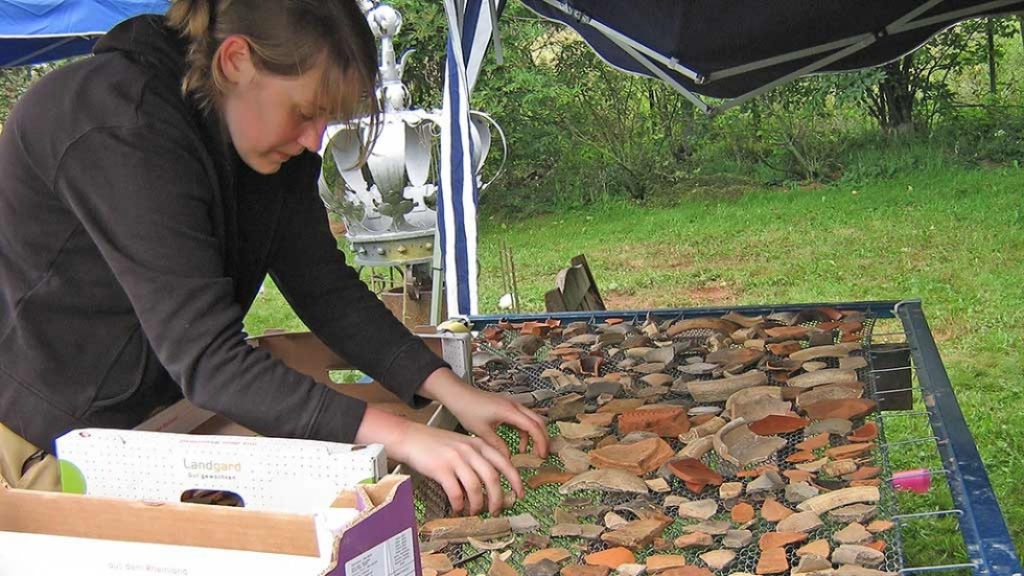 Bei der aus der Verfüllung des Ofens geborgenen Keramik handelt es sich um größtenteils vor Ort produzierter Keramik, die als Fehlbrände in den Ofen gelangten. Es lassen sich dabei mehrere Warenarten unterteilen. Zum einen kann in Rote und Weiße Ware unterschieden werden. Innerhalb dieser Warenarten kann anhand der Magerungszusätze weiter differenziert werden. Solche Magerungszusätze wurden hinzugegeben um eine bessere Plastizität des Tons zu erreichen. Das Formenspektrum entspricht einem für eine villa rustica zu erwartenden Spektrum: dominierend sind Töpfe, Schüsseln und Teller.